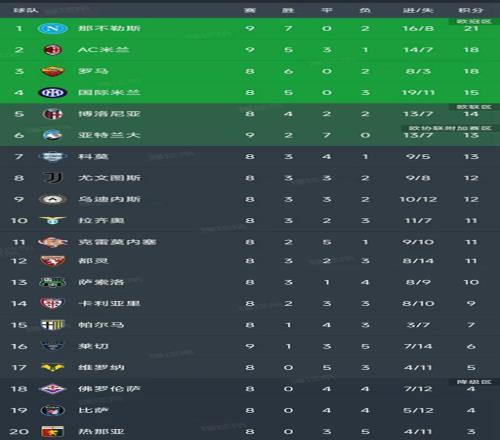 北京时间10月29日,意甲第9轮率先结束了两场比赛,最新积分榜如下!