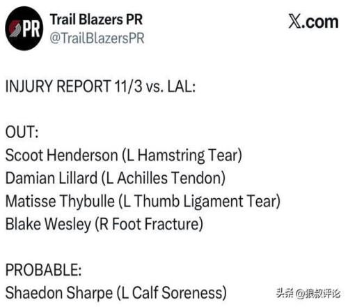 今天开拓者和湖人比赛两队缺得人够多的,看看杨瀚森会不会获得机会。上一场面对掘金的比赛,开拓者派出三名中锋分别是克林根,罗威,里斯,再加上一部分时间使用小个子阵容,杨瀚森NBA首次遭到NDP的待遇。