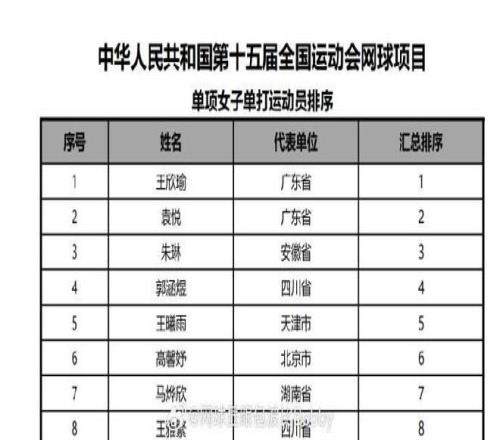 北京时间今日,全运会官方公布了网球女单项目的运动员排序,其中郑钦文已经不在名单之中,确认退出本届全运会女单赛事。