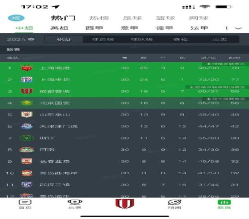 最终,上海海港、上海申花、成都蓉城、北京国安、山东泰山、天津津门虎、浙江俱乐部排名前七位。巧合的是,2024赛季也是这七家俱乐部排名前七,且位次完全相同——可谓是一个“奇观”。