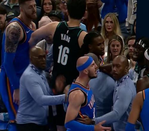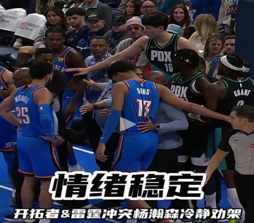 杨瀚森也在同场比赛充当“和事佬”,迎来NBA生涯首次劝架。当时吕佩尔对米切尔犯规引发冲突,哈尔滕施泰因情绪激动,杨瀚森从身后将其拉走,冷静化解事态。