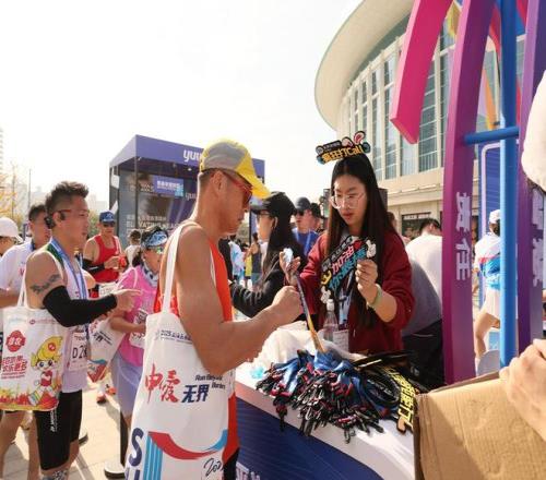 太平洋保险的“小水滴”志愿者们在赛后为每一位跑者提供服务。 受访者供图